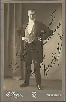 Aarne Alarik Orjatsalo (13 October 1883 – 1 January 1941) was a Finnish actor, theater manager, writer, revolutionary and soldier. He fought for the Finnish Red Guards in the 1918 Civil War and in the 1918–1919 Allied North Russia Intervention ranked as a British Navy officer. Orjatsalo later fled to the United States, where he was known by the alias Alaric Arnee.[1]