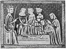 God created it in the twilight of the sixth day of Creation,[14][15] and delivered it to Adam when the latter was driven from paradise. After it had passed through the hands of Shem, Enoch, Abraham, Isaac, and Jacob successively, it came into the possession of Joseph. On Joseph's death the Egyptian nobles stole some of his belongings, and, among them, Jethro appropriated the staff. Jethro planted the staff in his garden, when its marvelous virtue was revealed by the fact that nobody could withdraw it from the ground (compare "the sword in the stone"); even to touch it was fraught with danger to life. This was because the Ineffable Name of God was engraved upon it. When Moses entered Jethro's household he read the Name, and by means of it was able to draw up the rod, for which service Zipporah, Jethro's daughter, was given to him in marriage. Her father had sworn that she should become the wife of the man who should be able to master the miraculous rod and of no other.[16]