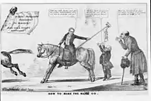To relieve the plight of the people, Alderman Clark focused on reviving the economy. Following his party's program of internal improvements, he proposed that shipping piers be built at public expense around the waterfront so as to stimulate trade and create jobs. An incautious statement that his proposal would "raise the price of every lot 5 x 100 feet west of Broadway $5,000 at a jump."[1] fit in with the perception by many Democrats that the Whigs were the "party of the rich", and the Democrats pushed instead for "poor relief" (direct handouts).