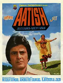 Aatish (transl. Fire) is a 1979 Hindi-language action film, produced by Mohan Kumar under the EMKAY Enterprises banner and directed by Ambrish Sangal. It stars Jeetendra, Neetu Singh in the pivotal roles and music composed by Ravindra Jain. The film was remade as Telugu movie Devudichina Koduku (1980).