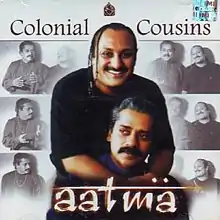 [1] Aatma was the third studio album by Indian pop band Colonial Cousins. The album was released on January 1, 2001 by Sony BMG after three years of their previous release. The album featured 9 songs, composed by Lesle Lewis and Hariharan. The music direction was done by Hariharan, Leslie Lewis, Jaidev & Ustad Ghulam Mustafa Khan. The songs were written by Munawar Masoom, Leslie Lewis, Milind Joshi, Thyagaraja, Tahir Faraz, Dev Kohli and Traditional by Ustad Ghulam Mustafa Khan and Ibrahim Ashq.