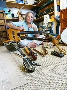 His passion of lutherie[14] and ancient instruments has inspired him to invent a 5-string sitar-guitar that he plays with a violin bow.[10]