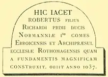 Sketch of the 18th-century plaque marking the tomb of Archbishop Robert the Dane in Saint-Père- He died 3 September 1309.