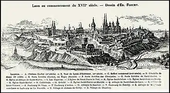 In 1359 during the Hundred Years War the troops of Edward III of England attacked a poorly fortified part of the town called la Villette and set fire to the abbey, destroying its rich library.[7] Only 257 manuscripts were saved, fifty of which are now in the Laon City Library, and a few more in the Royal Library of Belgium.