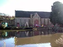 The 14th century Great Barn, which at 272 ft by 31 ft is reputedly the largest thatched tithe barn in the world,[11] was spared. Though now only half roofed, the still impressive structure has two porches, each surmounted by a watching chamber. Also spared from the general destruction was St Catherine's Chapel, used at one time as a lookout across the sea and conversely as a landmark for mariners. Both are currently Grade I listed buildings and scheduled monuments. In the churchyard to the south of the present parish church, traces of the old abbey church can be found. A further survivor is part of the end wall of what may possible have been part of the abbot's lodging, where two fireplaces can be seen. Other ruins visible on the site may have formed part of the guesthouse customary in monasteries. Often simple in style, these nevertheless offered much sought after safe shelter for travellers. Not far away, the Abbey's former swannery has become part of an internationally famous nature reserve.