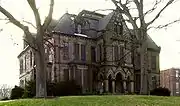 Designed by Boston architect Alden Frink for the prominent industrialist Aaron Davis Williams, Abbotsford was built in 1872 in the High Victorian Gothic style.[2] Just as the American economy was becoming industrialized, many people looked with nostalgia to times before machines and factories. Ironically, Aaron Davis Williams, Jr., used his profits from industry to build a house that could remind him of a medieval castle.