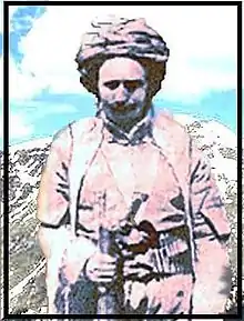 Abdullah Beg Benari was a Kurdish tribal leader, who lived from 1880 to 1939. He was the son of Sheikh Jahangir, who was the son of Sultan Beg, and a descendant of Bradostian Kurdish princes who fought in the battle of Dimdim Castle against the Iranian invasion by the Shah Abbas in 1609. Abdullah lived in the castle of Binar, which witnessed several battles between the local princes of Bradost and the Iranian-Afshar army. The last battle was fought between Mir Sultan Bradost and Amir Askar Afshar Urmia in 1841. Kurdish folklore is full of oral stories about Aola Begi Benare and his battles against the Persians and Russians.