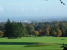 The city extends to 185.7 km2 (71.7 sq mi),[40] and includes the former burghs of Old Aberdeen, New Aberdeen, Woodside and the Royal Burgh of Torry to the south of River Dee. In 2017 this gave the city a population density of 1,225.[4] The city is built on many hills, with the original beginnings of the city growing from Castle Hill, St. Catherine's Hill and Windmill Hill.[41] When compared to mainland Europe, Aberdeen is further north than almost all of Denmark and plenty of southern Sweden, being just south of Gothenburg in terms of latitude.[42][43]
