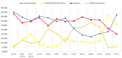 Ross Thomson of the Conservatives went on to gain the seat at the 2017 snap general election with a majority of 4,752 votes (10.6%) ahead of the sitting SNP MP Callum McCaig.
