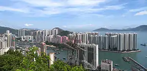 The Aberdeen Typhoon Shelters of Hong Kong are Aberdeen West Typhoon Shelter (Chinese: 香港仔西避風塘) and Aberdeen South Typhoon Shelter (香港仔南避風塘). Both typhoon shelters are located in Southern District, between the southern part of Hong Kong Island and the island Ap Lei Chau. They are roughly separated by the Ap Lei Chau Bridge and Aberdeen Channel Bridge. The Aberdeen floating village is located within the shelters.