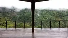 The daily schedule, in keeping with tradition, is rigorous.[13] Most residents (monastics and lay visitors) rise well before sunrise. Morning puja begins at 5:00 am and lasts an hour and a half. It includes chanting in both Pali and English,[14] as well as an hour of silent meditation. This is followed by a half-hour chore period and a simple oatmeal breakfast. At 7:30 am, there is a meeting where a short Dhamma reflection is given and work assignments for the morning period are announced. A three-hour work period follows this meeting, ending with a meal around 11:00 am, which has to be consumed before midday. All lay residents follow the 8 precepts which include not eating food after noon until dawn the next day. Around 1:00 pm, after the post-meal cleanup, the schedule is open for individual practice of sitting and walking meditation as well as Dhamma study. It is at this time that monks, in addition to their meditation and study practice, care for their personal requisites like the huts they live in and the robes they wear. One can also walk around the extensive network of trails that wind about the mountainside. At 5:30 pm, tea is served in the kitchen and on most days one of the Ajahns is available in the Dhamma Hall for questions and answers. Tea time is followed by the evening puja beginning at 7:00 pm, which includes chanting in Pali and another hour of silent meditation.[15] Formal Dhamma talks are offered on Saturday evening and lunar observance days during evening puja just after the period for silent meditation. On lunar observance days, which mark the four moon quarters, sitting and walking meditation continue until 3:00 am the next morning, followed by a morning puja.
