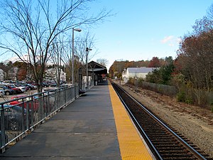 Abington station is an MBTA Commuter Rail station in Abington, Massachusetts. It serves the Plymouth/Kingston Line, and is located off Center Avenue (MA 123). It serves as a park and ride stop for the towns of Abington, Rockland, and Hanover. The station opened along with the rest of the Old Colony Lines on September 29, 1997.[1]