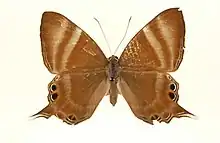 Abisara savitri, the Malay tailed Judy, is a small butterfly found in Asia that belongs to the Punches and Judies, that is, the family Riodinidae.