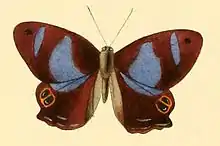 Abisara tantalus, the blue-spot Judy, is a butterfly in the family Riodinidae. It is found in Guinea, Liberia, Ivory Coast, Ghana, Nigeria, Cameroon, the Republic of the Congo, Angola and the Democratic Republic of the Congo.[2] The habitat consists of humid and dense forests.
