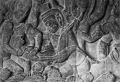 Abortion is sometimes attempted by causing trauma to the abdomen. The degree of force, if severe, can cause serious internal injuries without necessarily succeeding in inducing miscarriage.[88] In Southeast Asia, there is an ancient tradition of attempting abortion through forceful abdominal massage.[89] One of the bas reliefs decorating the temple of Angkor Wat in Cambodia depicts a demon performing such an abortion upon a woman who has been sent to the underworld.[89]