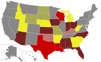 Currently, 13 states have criminal penalties for performing abortions, regardless of gestational age.[144] The penalties in states that have made abortion illegal vary, as outlined below.