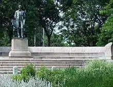 The sculpture's naturalism influenced a generation of artists.[1] One sculptor Standing Lincoln significantly influenced was Daniel Chester French, who would go on to create the Lincoln statute at the Lincoln Memorial in 1920.[4] The monument was also a favorite of Hull House founder Jane Addams, who once wrote, "I walked the wearisome way from Hull-House to Lincoln Park ... in order to look at and gain magnanimous counsel from the statue."[7] Journalist Andrew Ferguson discusses the statue at length in his book Land of Lincoln, writing that the statue presents "a sort of world-weariness that seems almost kind".[3] The City of Chicago awarded the monument landmark status on December 12, 2001.[1] It is located near the Chicago History Museum and North Avenue.