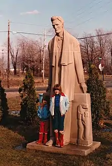 The original idea for the statue arose out of a visit by Cashwan, who was employed by the Federal Art Project in Michigan, in the course of a visit to inspect several WPA murals at Lincoln School by the Leon Makielski and his brother, Bronislau. There he proposed that he create the statue if the students at the school would do the work involved in erecting and landscaping the area around where the sculpture would be. Cashwan carved the statue in three parts, the "junior-high boys dug the excavation for the base; the "senior-highs" poured the concrete; all hands joined in the sodding and decorative planting."[3] The work was unveiled on May 4, 1938, the anniversary of Lincoln’s burial.[4]