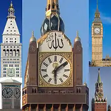 The Abraj Al Bait, also known as the Clock Towers (Arabic: أبراج الساعة, romanized: Abrāj al-Sāʿa, lit. 'Towers of the Clock'), is a government-owned complex of seven skyscraper hotels in Mecca, Saudi Arabia. These towers are a part of the King Abdulaziz Endowment Project that aims to modernize the city in catering to its pilgrims. The central hotel tower, which is the Makkah Clock Royal Tower, is the fourth-tallest building and sixth-tallest freestanding structure in the world. The clock tower contains the Clock Tower Museum that occupies the top four floors of the tower.[5]