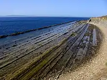 Abrasion platforms are shore platforms where wave action abrasion is a prominent process. If it is currently being fashioned, it will be exposed only at low tide, but there is a possibility that the wave-cut platform will be hidden sporadically by a mantle of beach shingle (the abrading agent). If the platform is permanently exposed above the high-water mark, it is probably a raised beach platform, which is not considered a product of abrasion but may be undercut by abrasion as sea level rises.