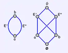 - {ø<a, ø<b, a<E', a<E", b<E', b<E", E'<G, E"<G}