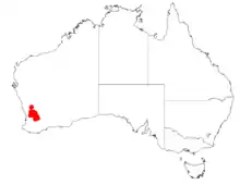 It is native to an area in the Wheatbelt region of Western Australia where it is commonly found growing in gravelly lateritic soils.[1] It has a scattered distribution from around Bolgart and Wyalkatchem in the north down to around Corrigin in the south around laterite outcrops as a part of woodland or heath communities.[2]