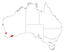 It is native to an area along the south coast in the Great Southern and the Goldfields-Esperance regions of Western Australia between Jerramungup and Ravensthorpe where it is found on rocky hillsides growing in shallow stony soils[1] with most of the population found in the Fitzgerald River National Park.[2]