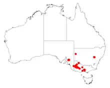 The species is present in the Little Desert National Park, and conservation reserves at Gerang Gerung, and The John Smith Reserve.[5]