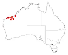 It is native to an area in the Pilbara and Kimberley regions of Western Australia where it is mostly found in floodplains growing in sandy, clay or loamy soils.[1] It is most commonly situated in the western Pilbara region mostly in between the De Grey River and Fortescue Rivers and forming dense monospecific stands.