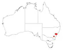 The shrub is found in New South Wales that is found between Bilpin in the north to Faulconbridge in the south in the foothills of the Blue Mountains where it is found on ridges and hill tops growing in sandstone based soils as a part of dry sclerophyll forest communities.[2]