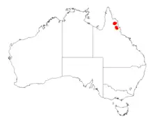 It has a limited distribution in far north Queensland around Mount Mulligan where it is known to form dense thickets. It is commonly situated on and among rock pavements and outcrops growing in sandstone based shallow rocky soils.[1]