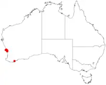 The species is found around Dandaragan in the Mid West region of Western Australia where it grows mostly in loamy and clay soils, often overlying sandstone or siltstone and is common in drainage lines.[2] It is often found along watercourses in the understorey as a part of Eucalyptus wandoo and Eucalyptus loxophleba woodland communities.[5]