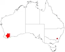 It is native to an area in the Wheatbelt and Great Southern regions of Western Australia from around Corrigin in the north to Mount Barker in the south and is found in damp low-lying areas growing in sandy, clay or loamy soils often with lateritic gravel[1] and is usually a part of open Eucalyptus wandoo woodland communities or in disturbed areas.[2]