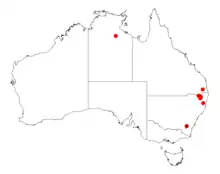 It is endemic to the north eastern corner of New South Wales in the Bolivia Range in the northern tablelands on the border with Queensland where it is found on granite slopes amongst boulders growing in sandy soil as a part of dry heath and Eucalyptus and Callitris woodland communities.[2]