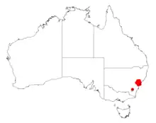 It is endemic to parts of New South Wales between Bilpin in the south and Mount Kindarun in the north on sandstone ridges growing in thin sandy soils as a part of dry sclerophyll forest communities.[1]