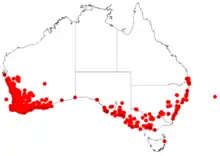 - Acacia saligna (GBIF) Map of herbaria records showing something of its invasiveness