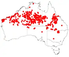 It is native to an area in the Northern Territory and the Kimberley and Pilbara regions of Western Australia.[3] It is also found in New South Wales and South Australia.[1]