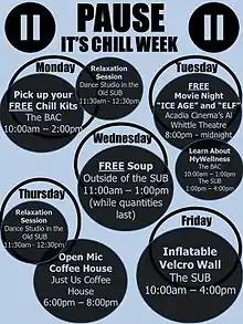 - Acadia Students' Union (10 March 2016). "Mental Health Initiative". Acadia Students' Union. Retrieved 10 March 2016.