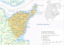 The Acadian Peninsula (French: Péninsule acadienne) is situated in the northeastern corner of New Brunswick, Canada, encompassing portions of Gloucester and Northumberland Counties. It derives its name from the large Acadian population located there. Two major islands off the northeast tip of the peninsula, Lamèque Island and Miscou Island, are culturally considered part of the Acadian Peninsula.