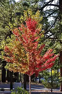 Acer × freemanii, Freeman maple or Freeman's maple, is a naturally occurring hybrid maple that is the result of a cross between Acer rubrum (red maple) and Acer saccharinum (silver maple). Wild specimens are found in eastern North America where the parent species overlap. The species is named for Oliver M. Freeman of the U.S. National Arboretum who hybridized A. rubrum with A. saccharinum in 1933. The fall foliage is a striking orange-red. It has many commercially available cultivars and is frequently used as a street tree.
