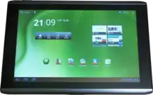 The Acer Iconia A500 is a tablet computer designed, developed and marketed by Acer Inc. The A500 launched with the Android Honeycomb operating system which is now upgradable to Ice Cream Sandwich 4.0.3 (since April 2012). The tablet is also sold in almost identical form as the Packard Bell Liberty Tab G100.[5]