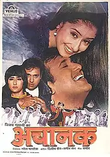 Achanak (English: Suddenly) is a 1998 Indian action thriller film directed by Naresh Malhotra starring Govinda and Manisha Koirala.[2] The film was a box office failure.[3] During a song in the climax, Govinda's getup resembles Jim Carrey's in The Mask.