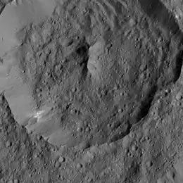 - Hiesinger, H.; Marchi, S.; Schmedemann, N.; Schenk, P.; Pasckert, J. H.; Neesemann, A.; O’Brien, D. P.; Kneissl, T.; Ermakov, A. I.; Fu, R. R.; Bland, M. T.; Nathues, A.; Platz, T.; Williams, D. A.; Jaumann, R. (2016-09-02). "Cratering on Ceres: Implications for its crust and evolution". Science. 353 (6303): aaf4759. doi:10.1126/science.aaf4759. ISSN 0036-8075. PMID 27701089. S2CID 7736874.