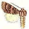 The wingspan is 30–35 mm. Adults are on wing from May to June depending on the location.