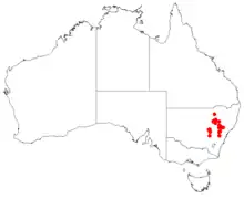 It is found in dry sclerophyll forest or in scrub on sandstone or granite slopes.[2]