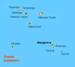 Administratively the four atolls of the Acteon group belong to the commune of Gambier.