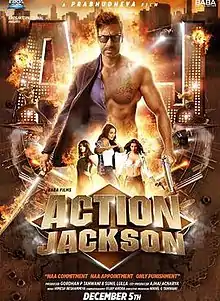 Action Jackson is a 2014 Indian Hindi-language action thriller film[4] directed by Prabhu Deva and produced by Gordhan P. Tanwani and Sunil Lulla. The film features Ajay Devgn in a double role, alongside Sonakshi Sinha, Yami Gautam and Manasvi Mamgai, while Kunaal Roy Kapur appears in a supporting role with Anandaraj playing the main antagonist. Deva and Devgn have paired for the first time with this film. Action Jackson released on 5 December 2014.