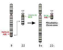 T(9;22) affect the ABL gene at 9q34 and BCR at 22q11. The hybrid gene product ABL/BCR is an oncogene which could lead several types of leukemia including BAL. ABL/BCR could active several molecular pathways: