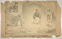 Rehan was part of Daly's company, known as the "Big Four". John Drew, Jr., Mrs. Ann Hartley Gilbert, and James Lewis made the rest of the group. Under Daly's meticulous direction and management, the foursome won over critics and audiences with their specialities of Shakespearean comedies, Restoration comedies, and translations of German farces. In general, the four leads played variations on the same character types. Drew and Rehan were slotted in to the romantic hero and heroine roles, while Lewis and Gilbert took the older, character roles. As one reporter at the Herald described it, "They have one way of playing comedy at Daly's and only one. Whether the piece be Sheridan's or Shakespeare's or Schonthan's or Jerome's, the actors are always good, bright, middle-class Americans."[6] While finding much success in "breeches roles", for her audiences in America and abroad she came to embody an ideal of femininity that was desirable, respectable, and aspirational. In his biography of her, one of Rehan's contemporaries, William Winter wrote "Each part that she has undertaken has been permeated with something of herself...Her soul is given to her profession, and the nature of the woman herself is discerned in that of the character that she represents."[7] It soon became clear that Rehan was the star of Daly's company even within the Big Four, but Daly refused to acknowledge this with top billing or any other prioritizing treatment.