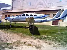 The A500 was developed from the M-309 CarbonAero technology demonstrator designed by Burt Rutan and built by Scaled Composites at the Mojave Airport. The "309" designation refers to this being Rutan's 309th aircraft design. The 309 first flew in March 2000, but the aircraft has since been gutted and was used as a static display outside the Adam Aircraft Industries headquarters.[1] In 2006 the 309 was loaned to the Wings Over the Rockies Air and Space Museum and is now on display.
